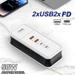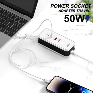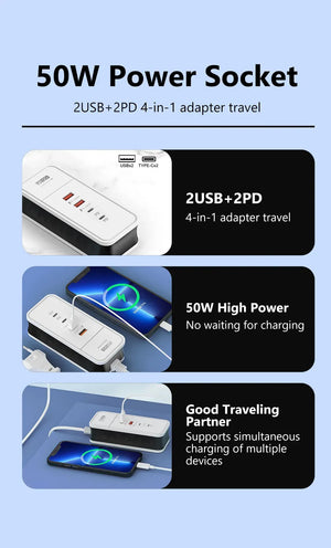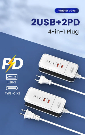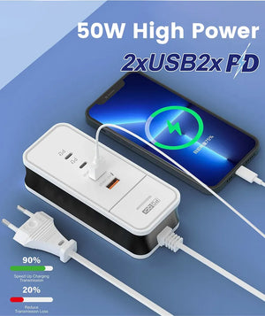 4-in-1 Power Socket Adapter 50W 2USB 2PD Fast Charging Charger Portable EU US Plug Socket For Home Office Travel Wall Charger