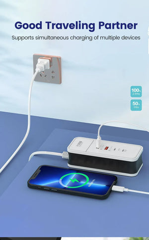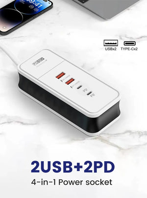 Upgrade your charging setup with the 4-in-1 Power Socket Adapter 50W – a compact and powerful solution for all your devices. Featuring 2 USB ports and 2 PD fast-charging ports, this adapter delivers up to 50W output for efficient and reliable charging.