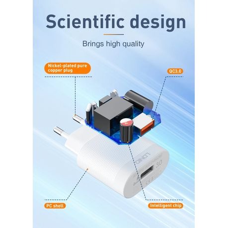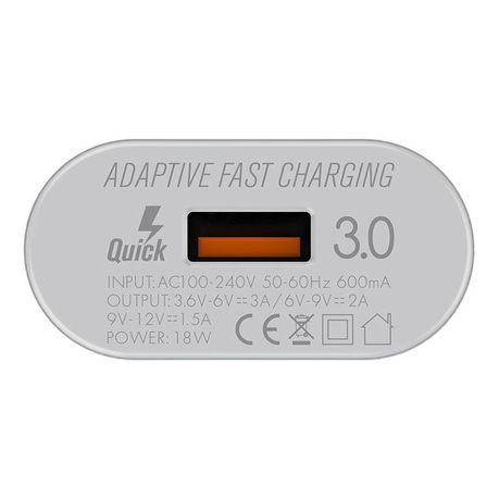 Charger consists of 1 port Qualcomm 3.0 USB quick charge