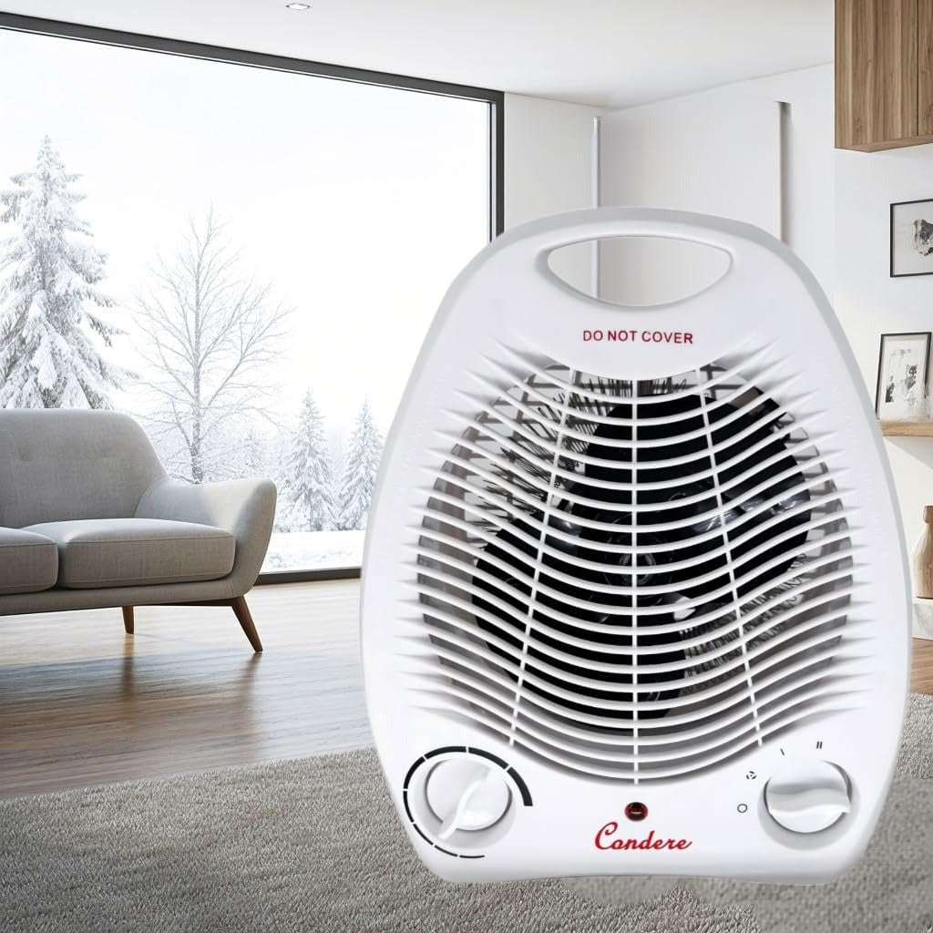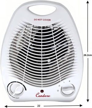Condere ZR-5011 Fan Heater Electric Portable Space Heater for Indoor Use, 1000W/2000W Fan Heater with Adjustable Thermostat, Overheat Protection, Mini Room Heater for Bedroom, Office, Desk & Small Space