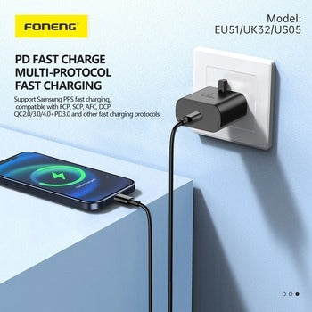 Upgrade your charging experience today with the FONENG 25W GaN Fast Charger. Embrace faster, smarter, and safer charging technology and stay ahead of the curve with FONENG - where charging faster means going further.