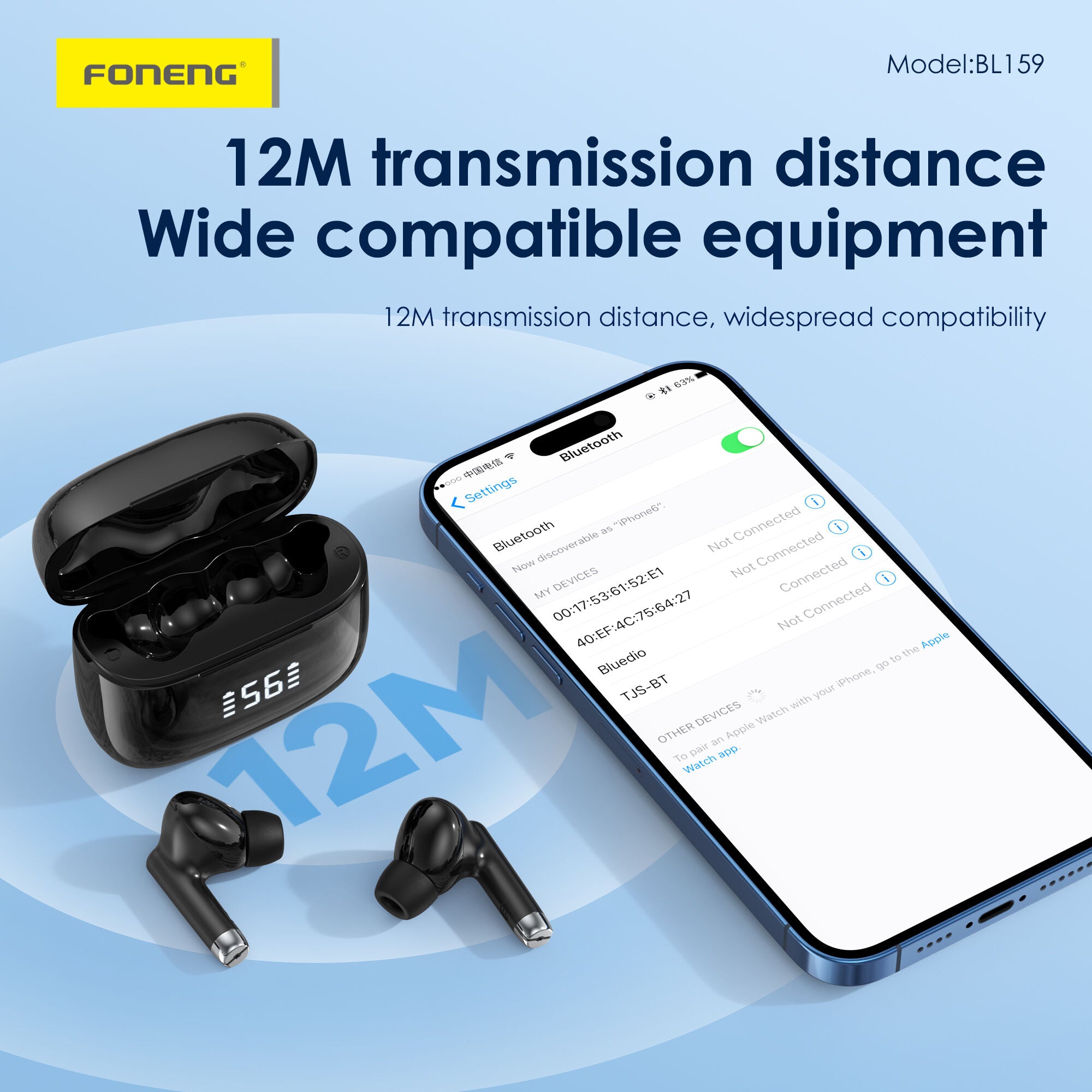 FONENG TWS Wireless Earphones True Wireless In-Ear 5.4 Bluetooth Digital Display