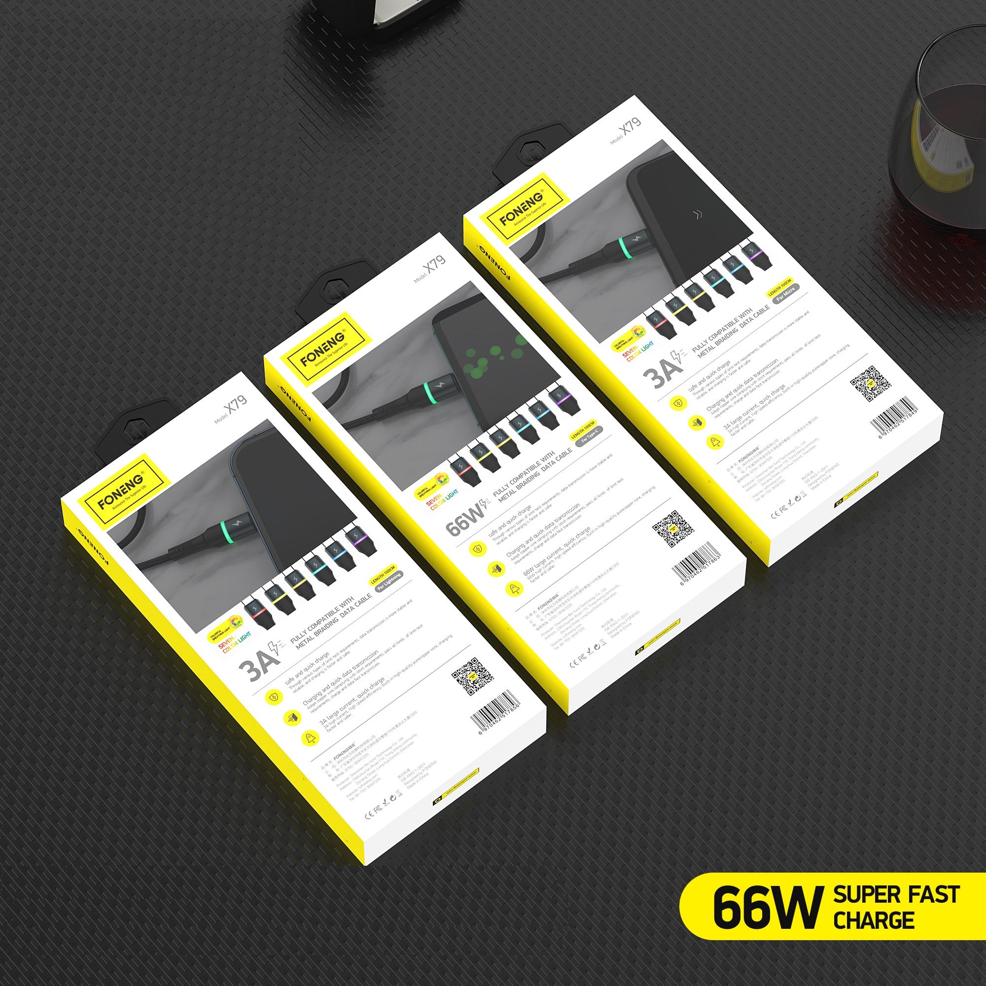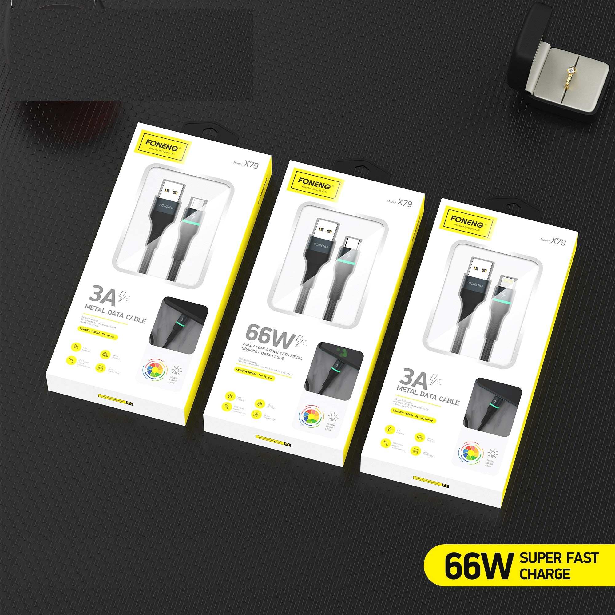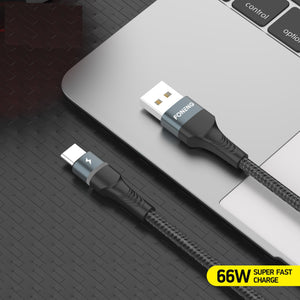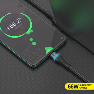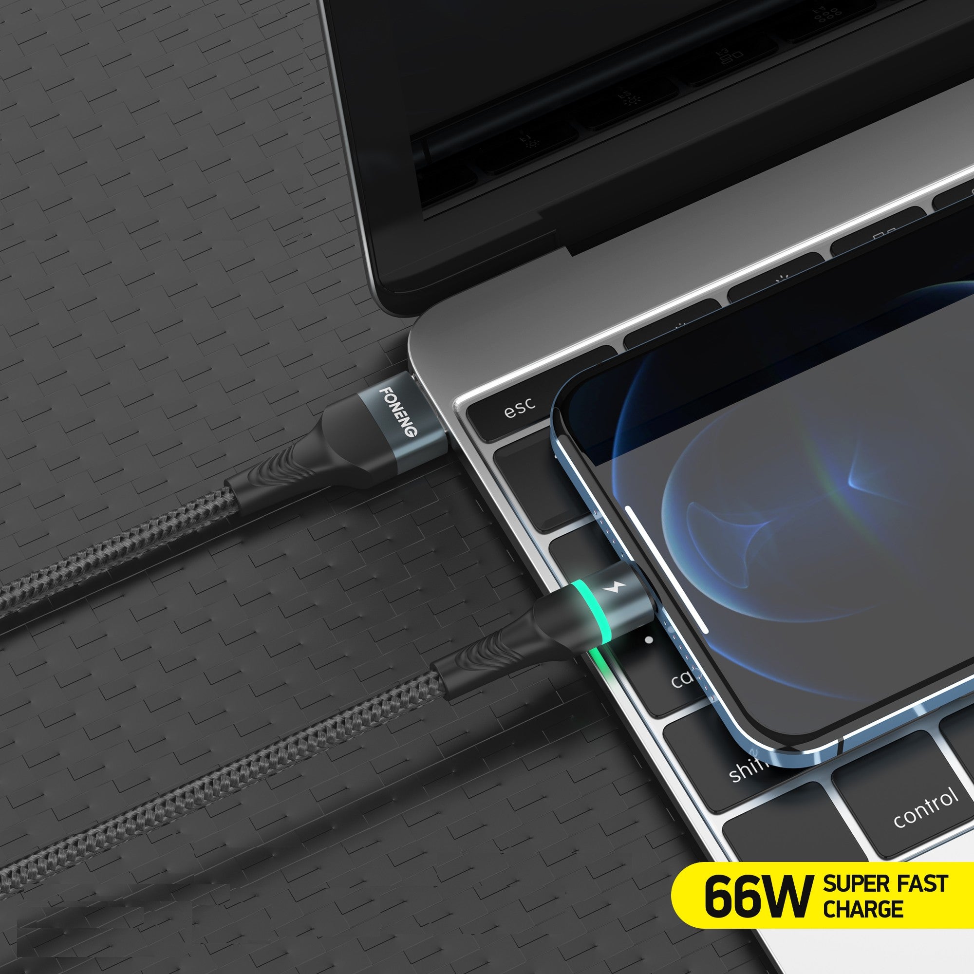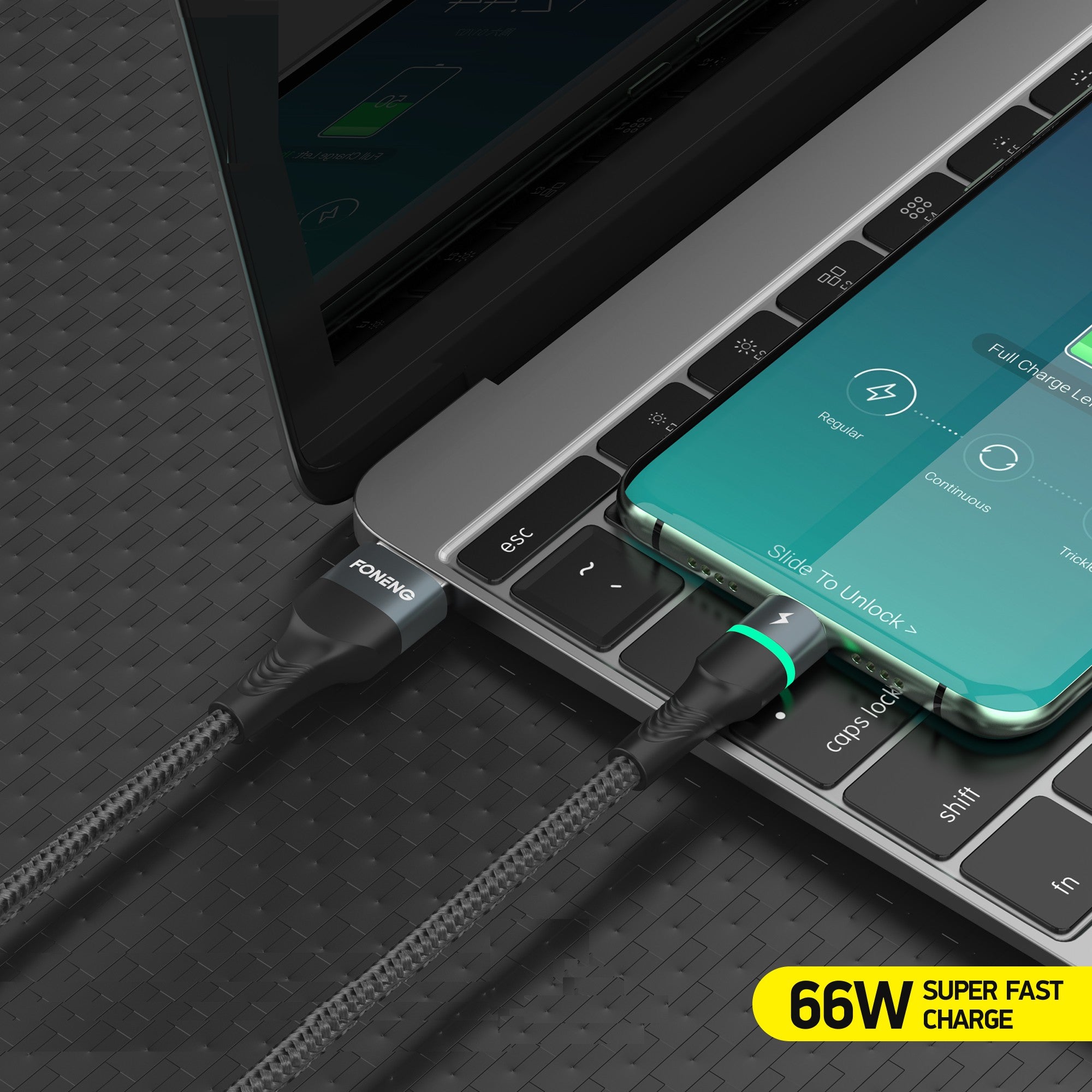 FONENG USB-C Fast Charging Metal Data Cable Nylon Braided 66W Color Light