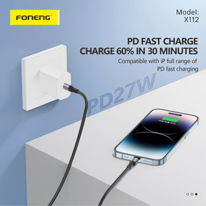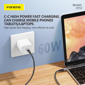 Foneng X112 Braided Ultra Fast Quick Charging Cable Type-C To Type-C 60W, 1m