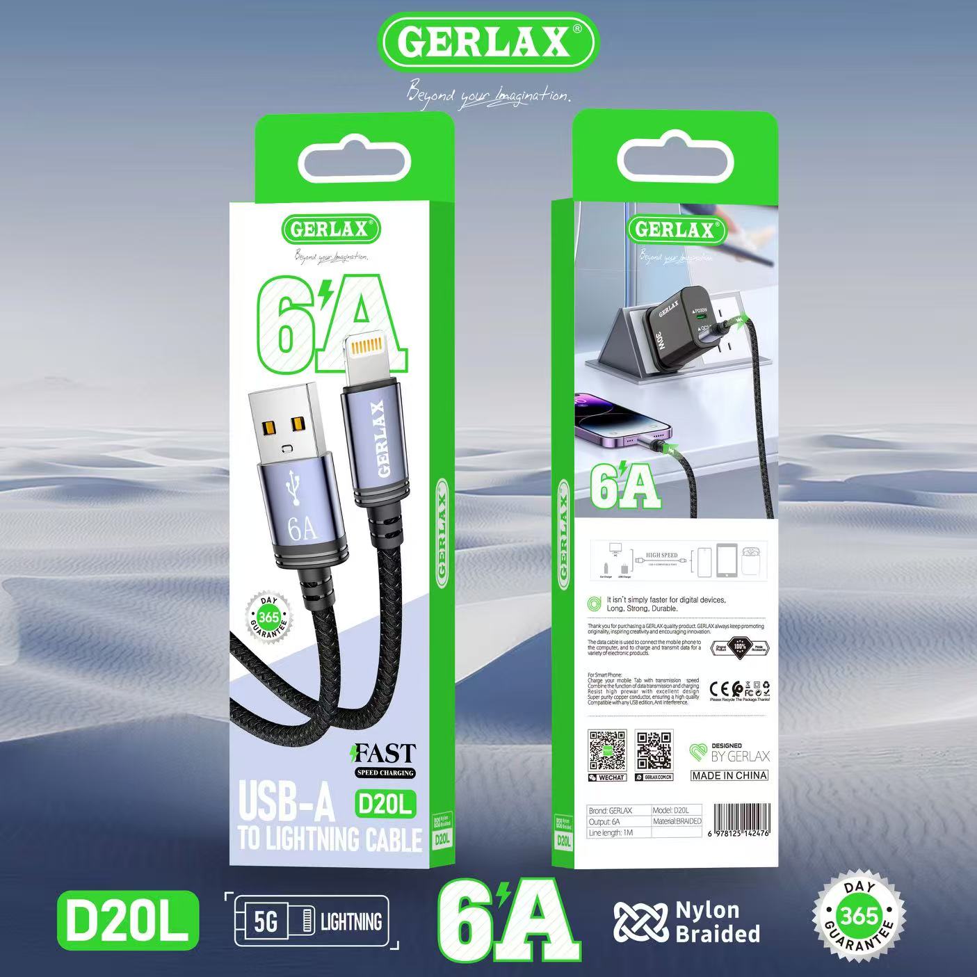 The Gerlax D20 Fast Charging Cable Series is designed to deliver fast, stable, and reliable charging performance for a wide range of devices. Available in three different connector options – USB-A to Lightning, USB-A to Micro USB, and USB-A to Type-C, this listing allows you to choose the exact cable you need while enjoying the same high-quality build and performance.