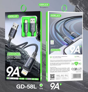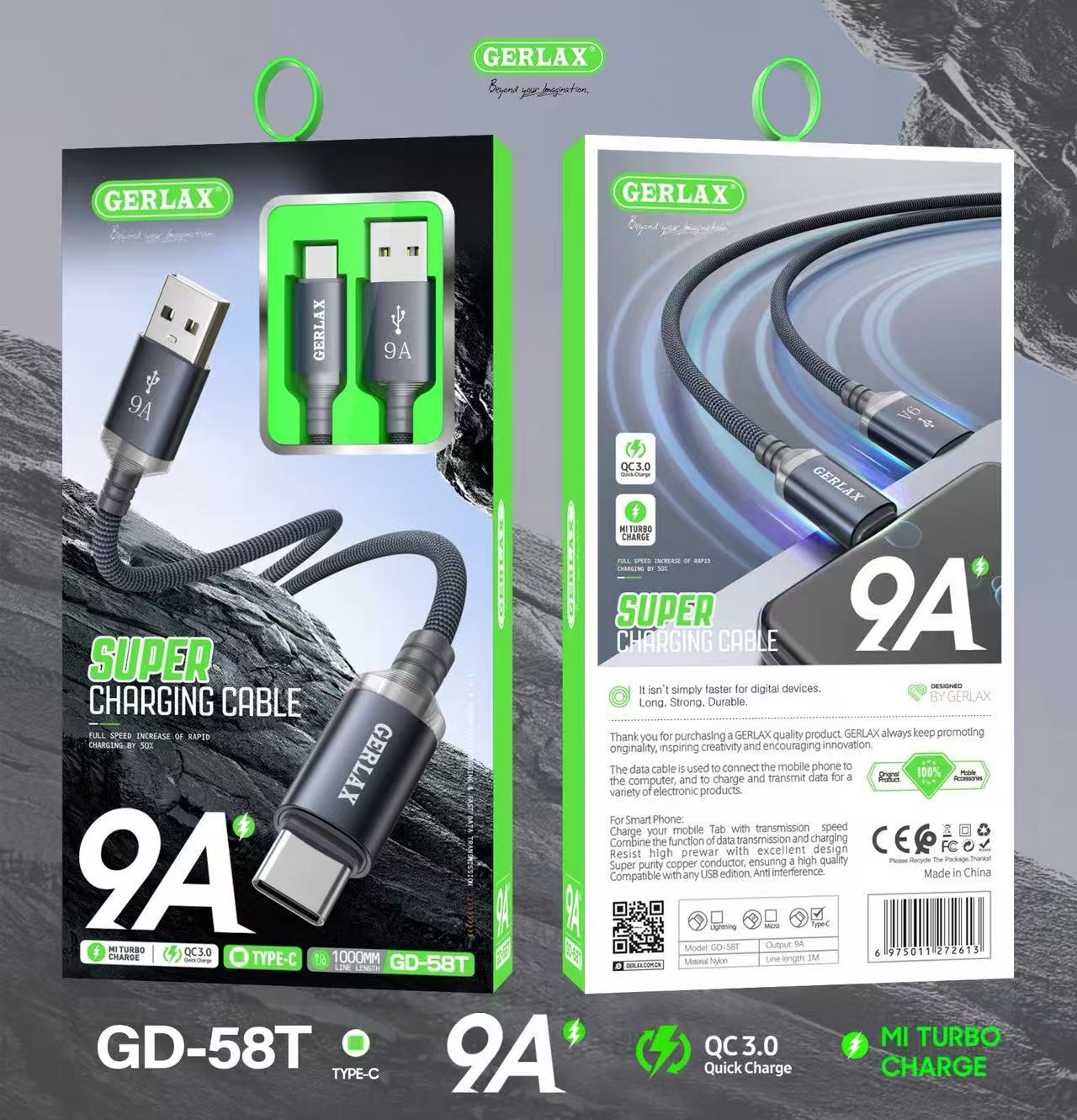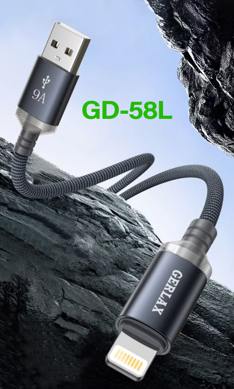 The Gerlax GD-58 Super Fast Charging Cable is designed for ultra-high speed charging, durability, and reliable everyday performance. Supporting up to 9A high-current output, it delivers powerful and efficient charging that can increase charging speed by up to 50% when used with compatible fast charging devices and adapters.