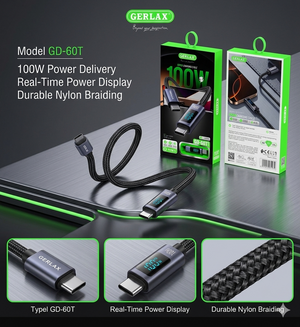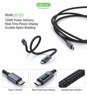 Gerlax Type-C to Type-C Charging Cable & Data Transfer 100W (1M) with LED Display | QC3.0 Fast Charging