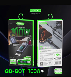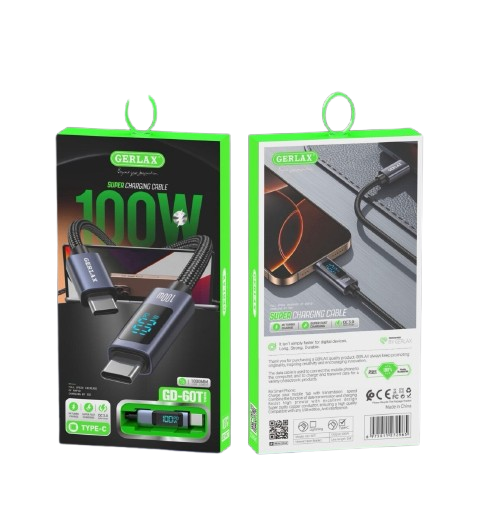 The Gerlax Type-C to Type-C Cable is designed for high-speed charging and reliable data transfer, making it ideal for modern smartphones, tablets, and laptops. With support for up to 100W power delivery, it ensures fast and efficient charging for compatible devices.