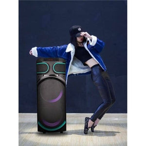 The GF701 Nesty Bluetooth Speaker with Wireless Microphone transforms any gathering into an unforgettable celebration. This powerful party speaker delivers impressive sound quality that fills the room, whilst vibrant LED lights create an electrifying atmosphere that pulses with the beat. The included wireless microphone makes it perfect for karaoke sessions, announcements, or simply taking control of the entertainment. With Bluetooth connectivity, you can effortlessly stream your favourite playlists from any compatible device. The tower design maximises sound projection, ensuring everyone at your party enjoys crystal-clear audio. Whether you're hosting a birthday celebration, garden party, or indoor get-together, this speaker system provides everything you need to keep the energy high. The eye-catching LED light display adds a professional touch to your event, whilst the wireless microphone feature encourages participation and fun. Easy to set up and simple to operate, this speaker system is your go-to solution for creating memorable moments with friends and family.