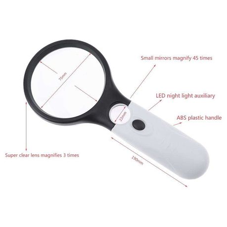 - Lightweight Design. The magnifying glass provides 3 LED lights. The LED lights on the underside provide
