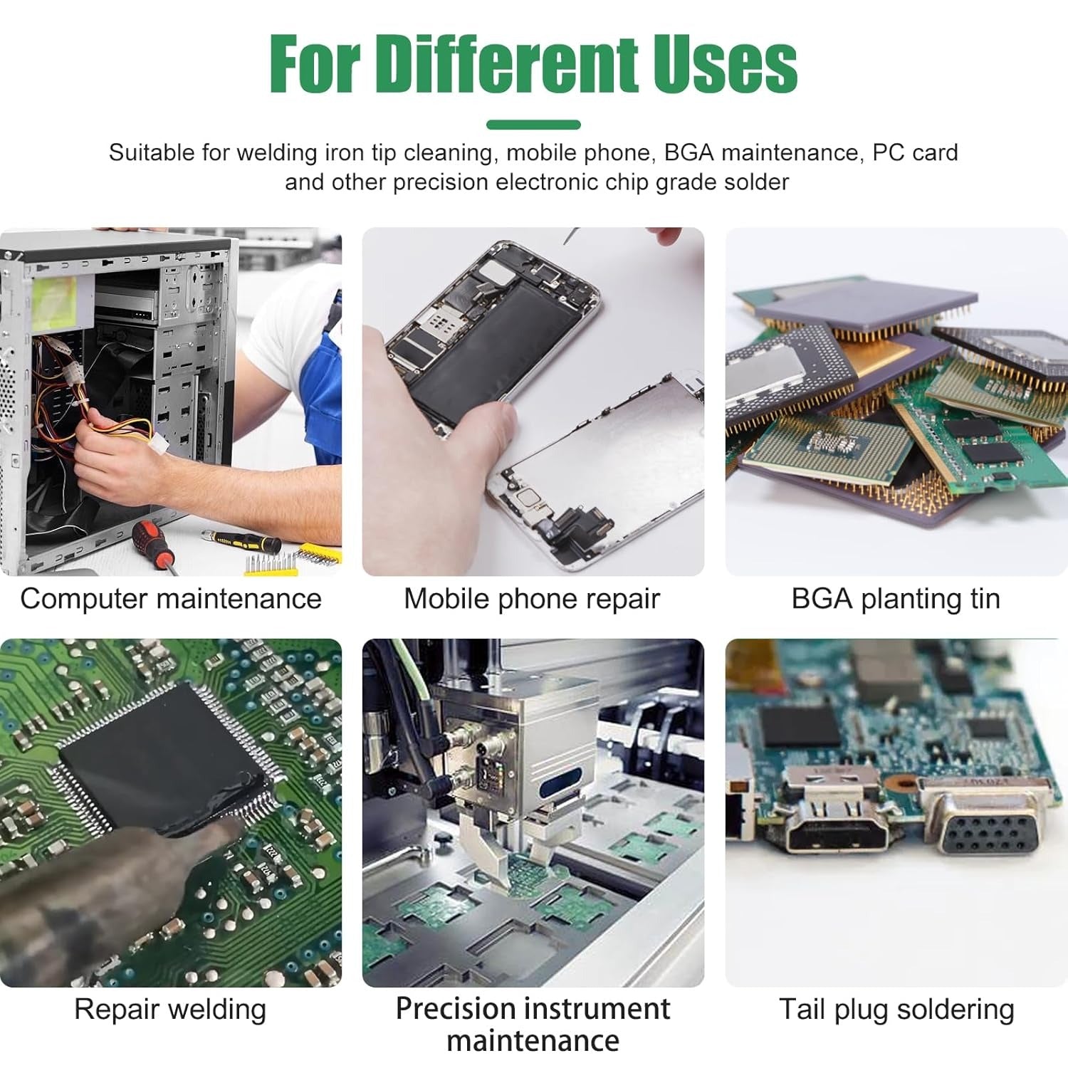 - VERSATILE APPLICATIONS: Suitable for welding iron tip cleaning, mobile phone repair, BGA maintenance, PC card soldering, computer maintenance, precision instrument work, and other electronic chip-grade soldering tasks