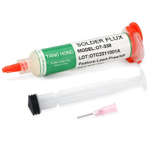 This professional-grade no-clean solder flux paste is an essential tool for precision electronics repair and maintenance work. The lead-free, halogen-free formula makes it suitable for a wide range of applications, including mobile phone repair, computer maintenance, BGA chip work, PC card soldering, and precision instrument servicing. The convenient 20g syringe design features an easy-to-use needle applicator that allows for precise flux application exactly where you need it. Simply turn the cap counterclockwise to open, install the needle by rotating clockwise, remove the bottom cover, and you're ready to work. The flux enhances solder flow and helps create strong, reliable connections on circuit boards and electronic components. Its liquid consistency ensures smooth application whilst the no-clean formula means minimal residue after soldering, saving you time on post-work cleaning. Whether you're repairing welding iron tips, working on intricate BGA planting, performing tail plug soldering, or maintaining digital devices, this quality solder flux delivers consistent results for both professional technicians and electronics enthusiasts.